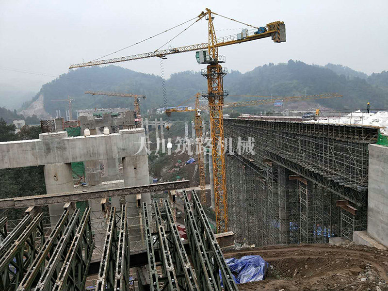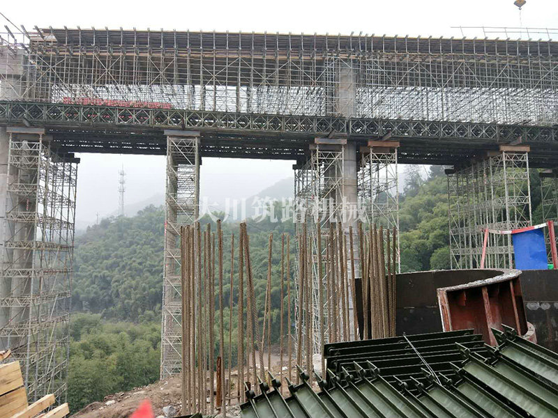 特點:現(xiàn)澆梁支架平臺的跨度大,高度高,使用的貝雷片數(shù)量達到1808片,加強弦桿2800根,工程于2017年9月開始施工。